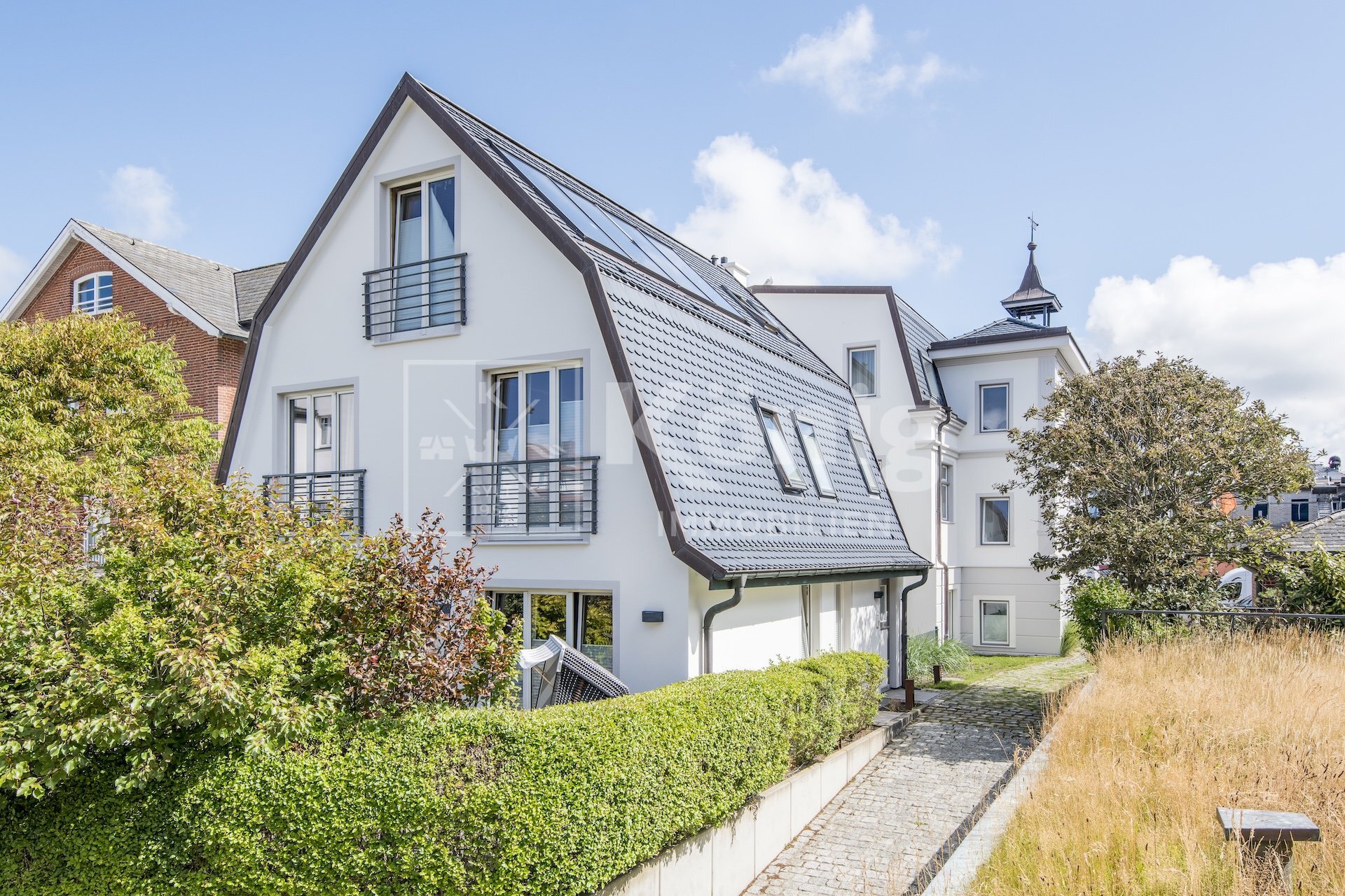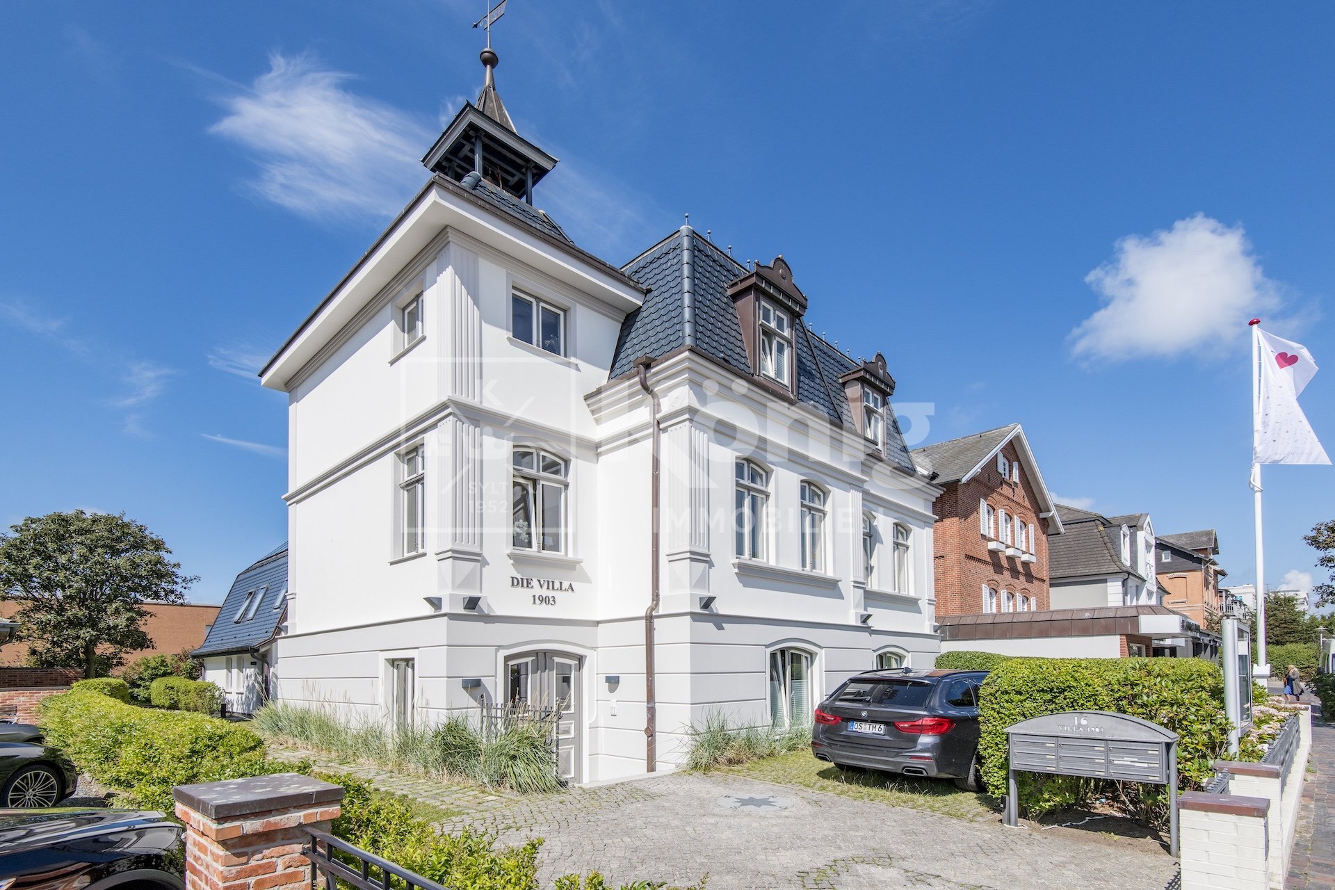 Diese genehmigte Ferienwohnung im Neubau der „Villa 1903“ verbindet moderne Architektur mit einem Gefühl von Rückzug und Klarheit – ein stilvoller Ort, der sich über drei Etagen erstreckt und Raum für individuelle Urlaubsmomente schafft. Der private Freisitz zur Westseite bietet geschützte Stunden im Freien, eingebettet in das architektonisch harmonische Ensemble im Herzen Westerlands.