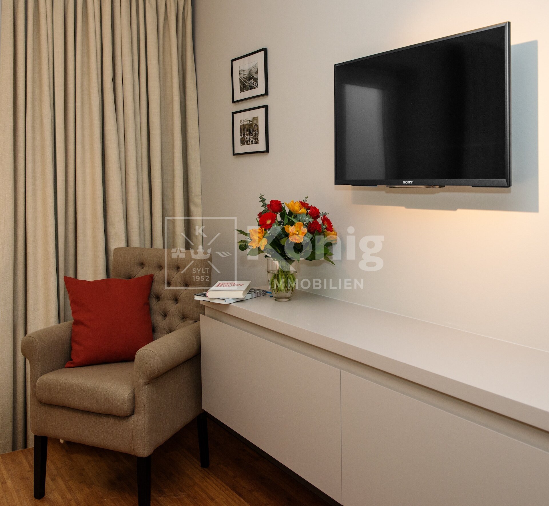 Zur Entspannung lädt der gemeinschaftliche Wellnessbereich im Haus ein – mit Dampfbad und Infrarotsauna ein wohltuender Gegenpol zum Inseltag. Die Ferienwohnung im Neubau der „Villa 1903“ bietet Struktur, Licht und Lage – ideal für Menschen, die Sylt bewusst erleben möchten.