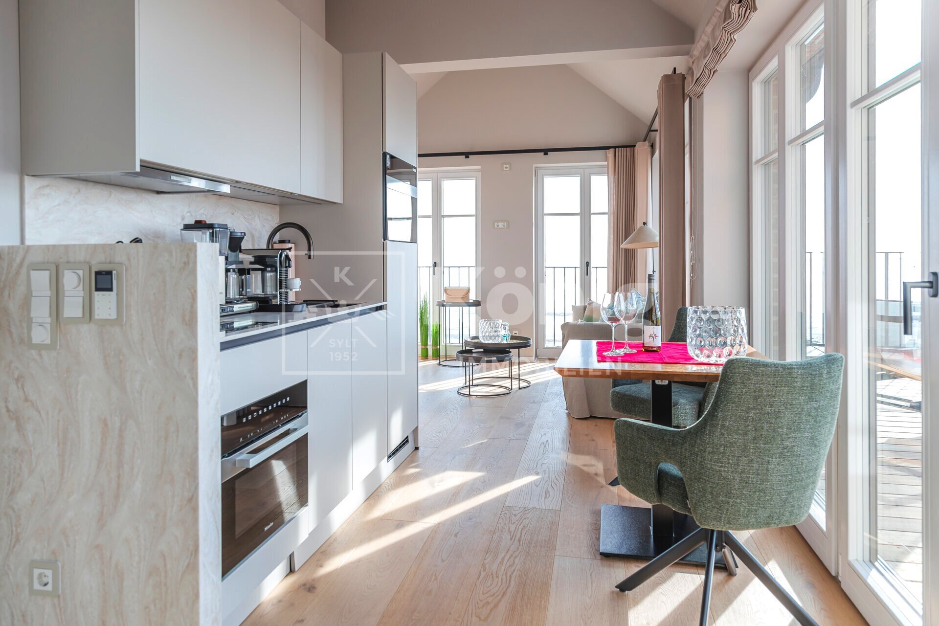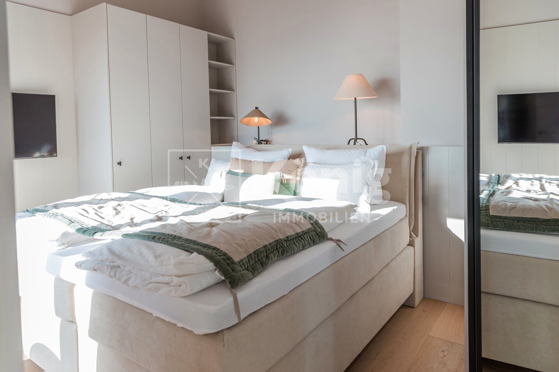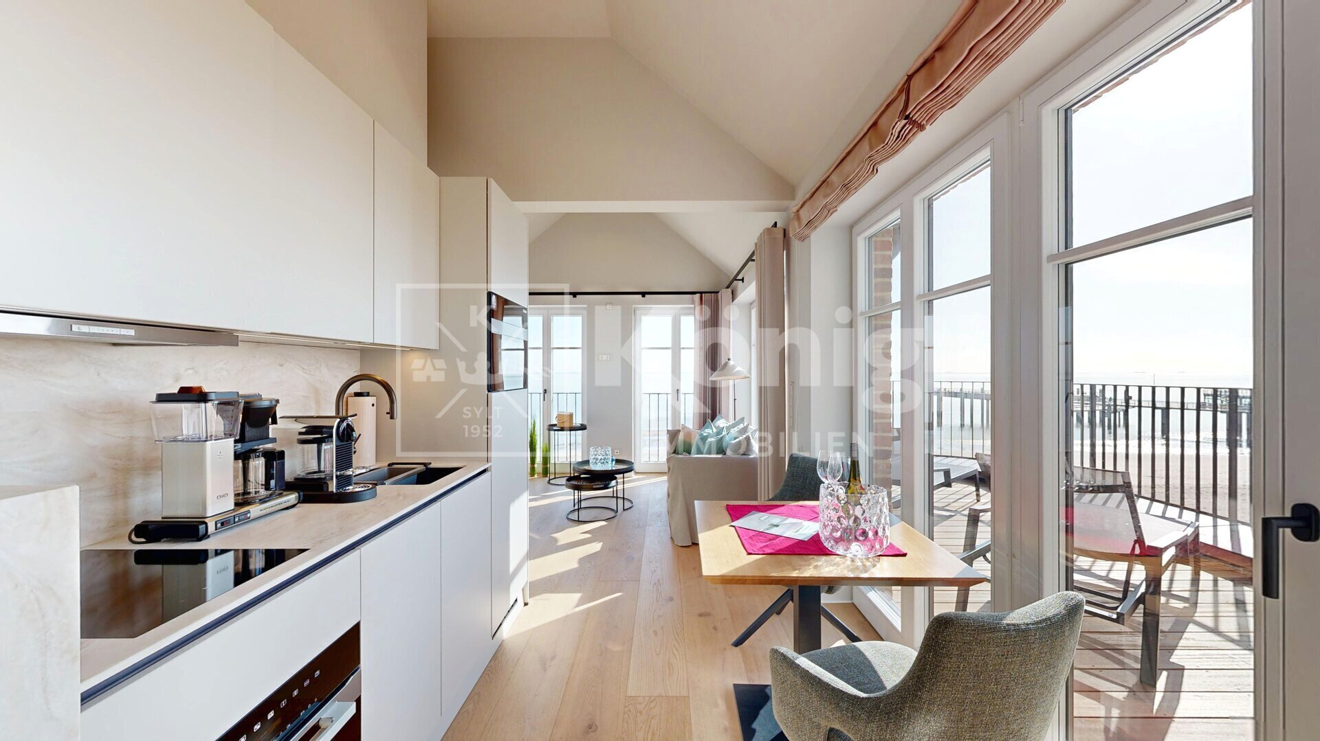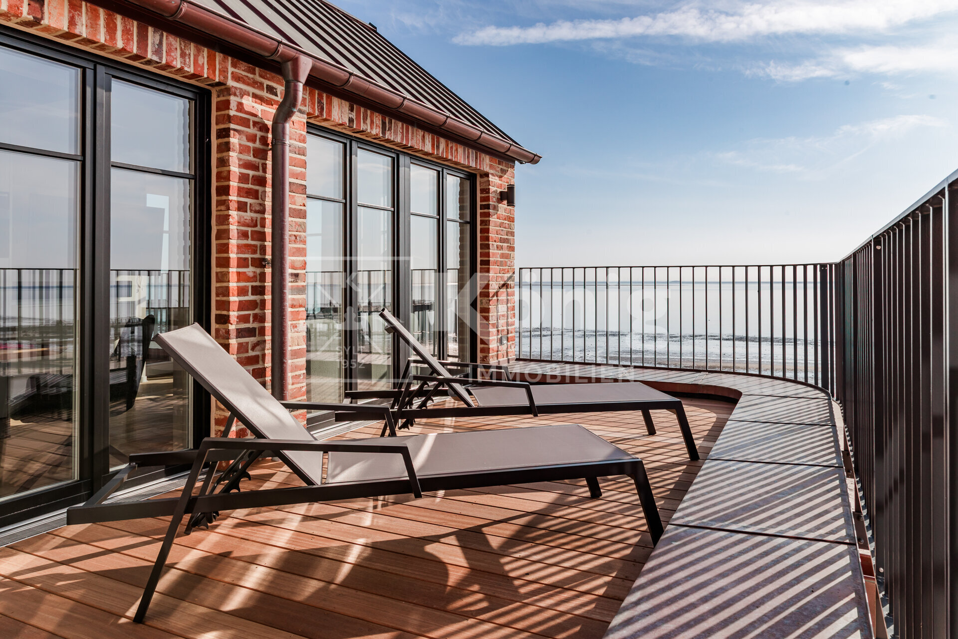 Erleben Sie Exklusivität und höchsten Wohnkomfort auf einer Ebene. Das Penthouse besticht durch einen lichtdurchfluteten Wohn- und Essbereich, in dem sich eine hochwertige Einbauküche nahtlos integriert. Das elegante Schlafzimmer, mit Meerblick und direktem Zugang zur Dachterrasse, bietet Platz für Ruhe und Rückzug, während das moderne Badezimmer allen Ansprüchen gerecht wird. Für ein behagliches Wohnambiente sorgen der Echtholzfußboden und die effiziente Fußbodenheizung, die über umweltfreundliche Fernwärme betrieben wird. Die beiden Dachterrassen sind ein ultimatives Highlight und laden zum Entspannen ein. Die nach Süd-Ost ausgerichtete Wohnung bietet Ihnen aus der direkten Strandlage einen atemberaubenden, unverbauten Meerblick.
