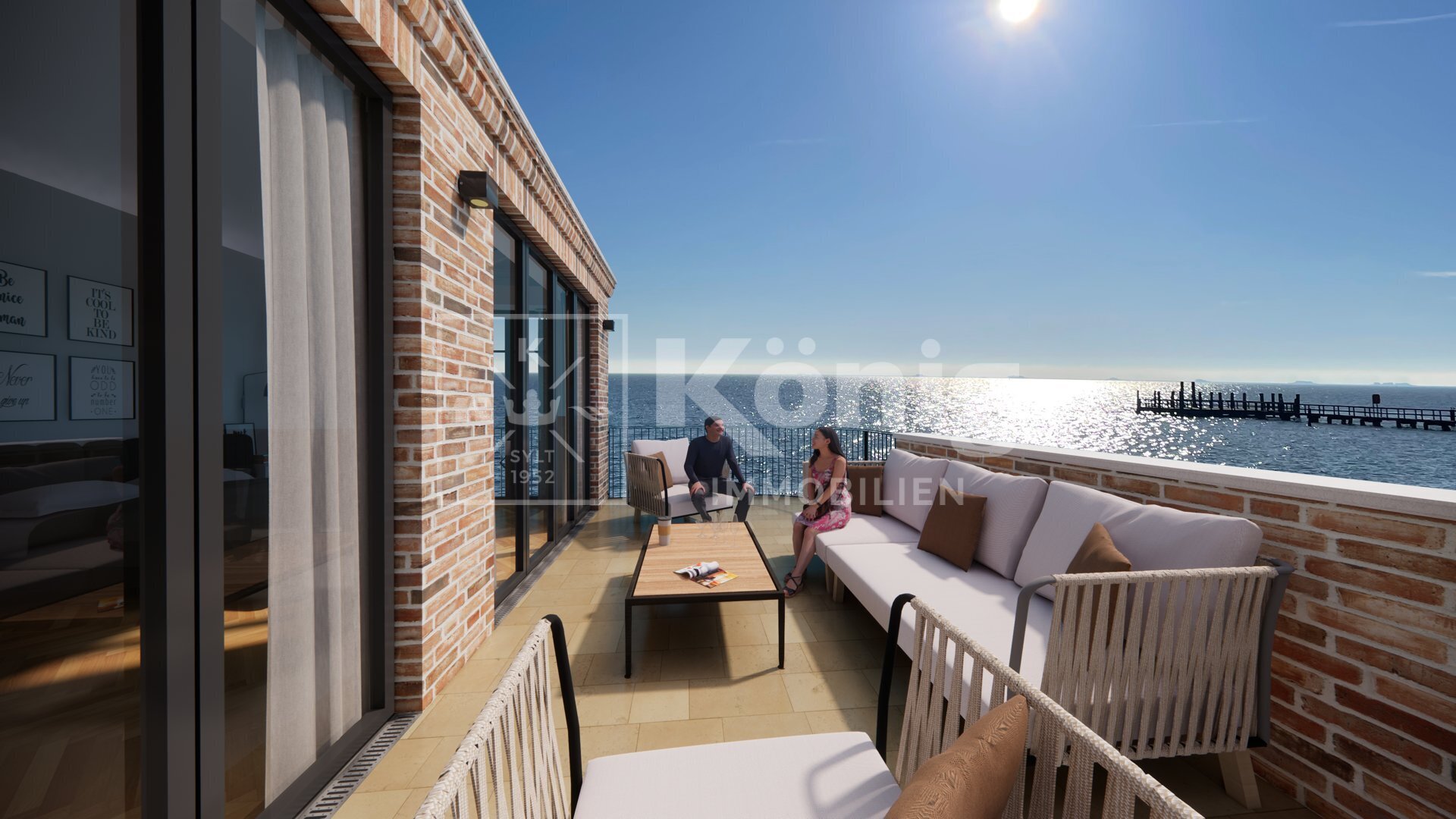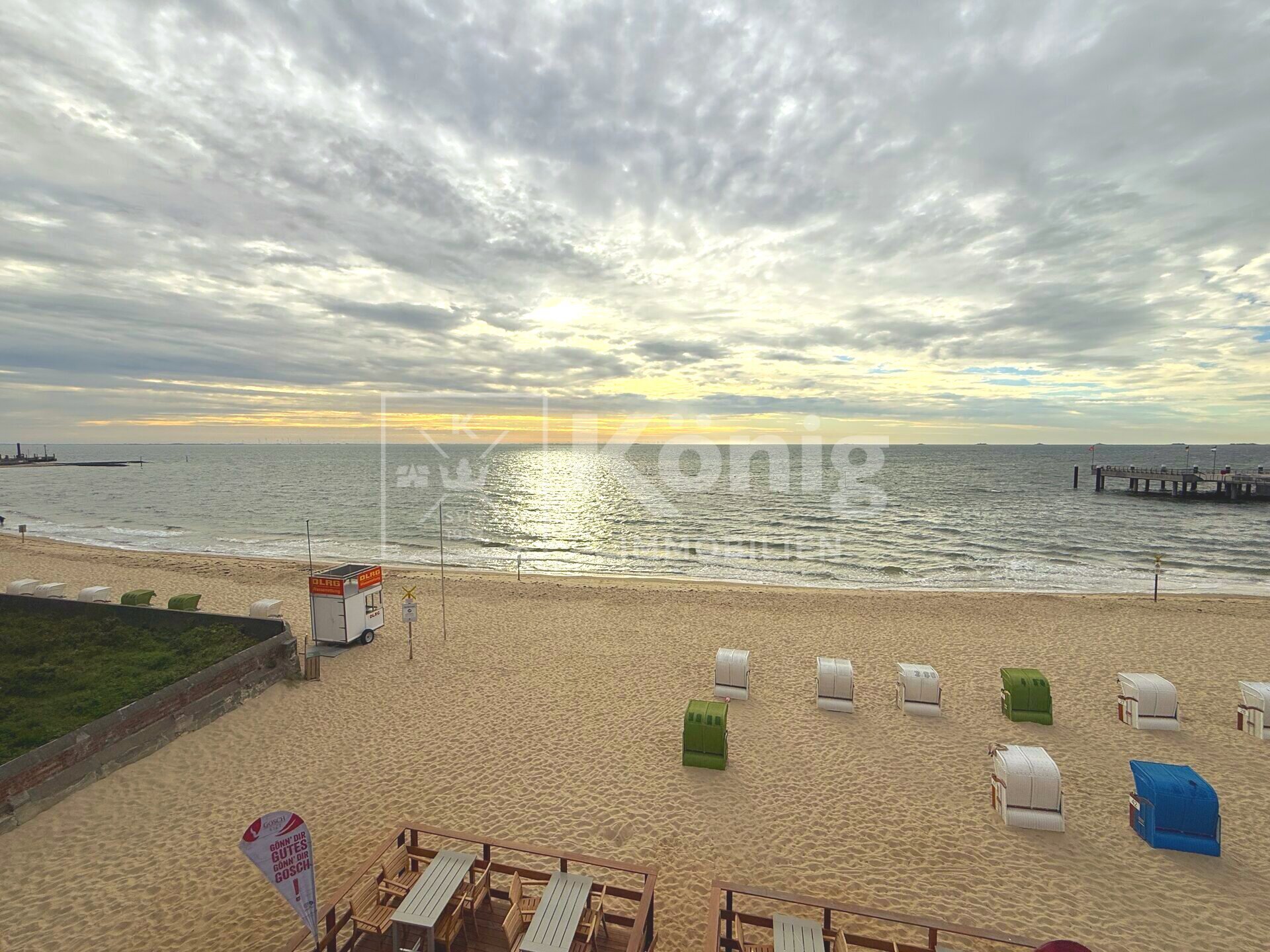 Erleben Sie Exklusivität und höchsten Wohnkomfort auf einer Ebene. Die Wohnung besticht durch einen lichtdurchfluteten Wohn- und Essbereich, in dem sich eine hochwertige Einbauküche nahtlos integriert. Das elegante Schlafzimmer bietet Platz für Ruhe und Rückzug, während das moderne Badezimmer allen Ansprüchen gerecht wird. Für ein behagliches Wohnambiente sorgen der Echtholzfußboden und die effiziente Fußbodenheizung, die über umweltfreundliche Fernwärme betrieben wird. Die beiden Dachterrassen sind ein ultimatives Highlight und laden zum Entspannen ein. Die nach Süd-Ost ausgerichtete Wohnung bietet Ihnen aus der direkten Strandlage einen atemberaubenden, unverbauten Meerblick.