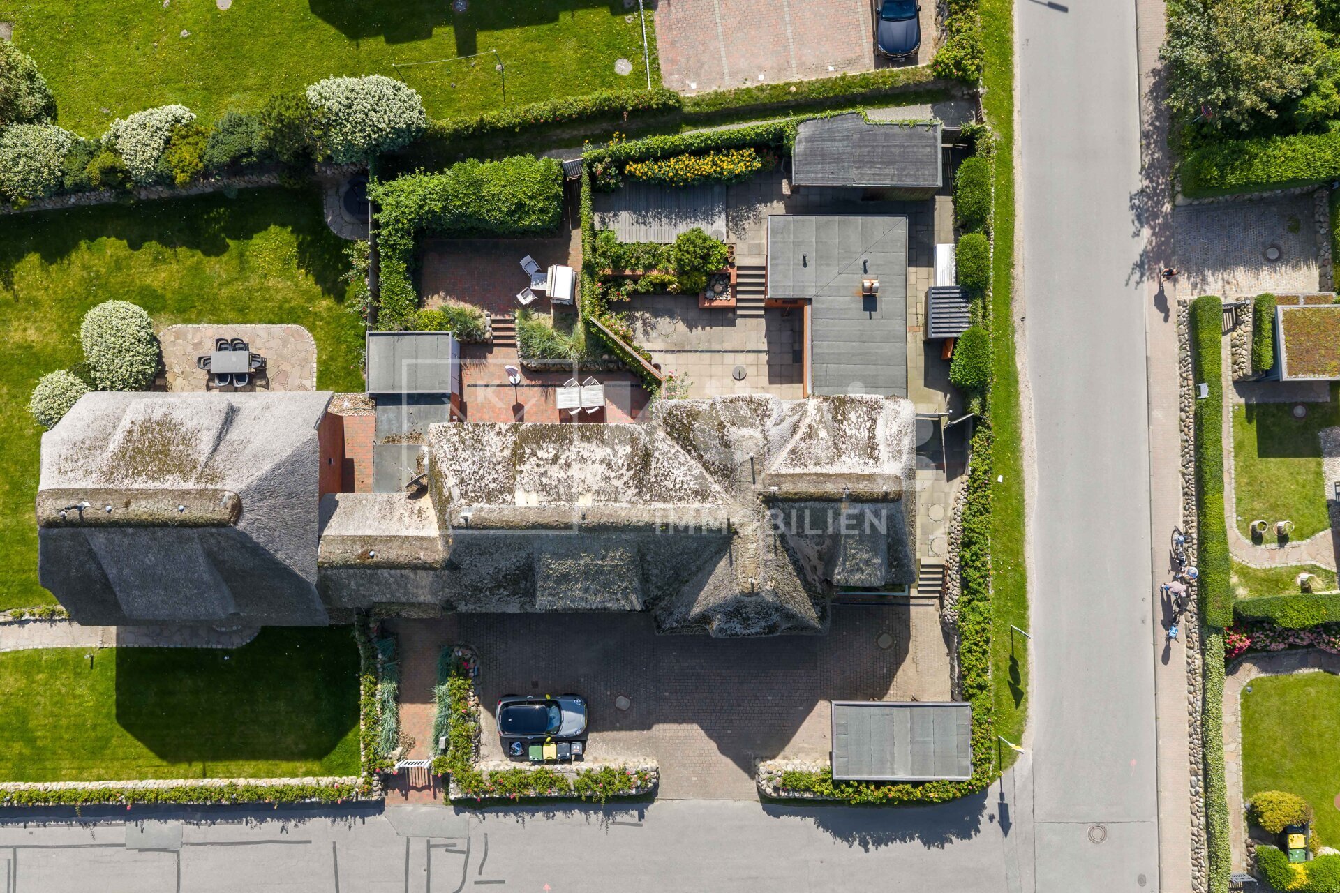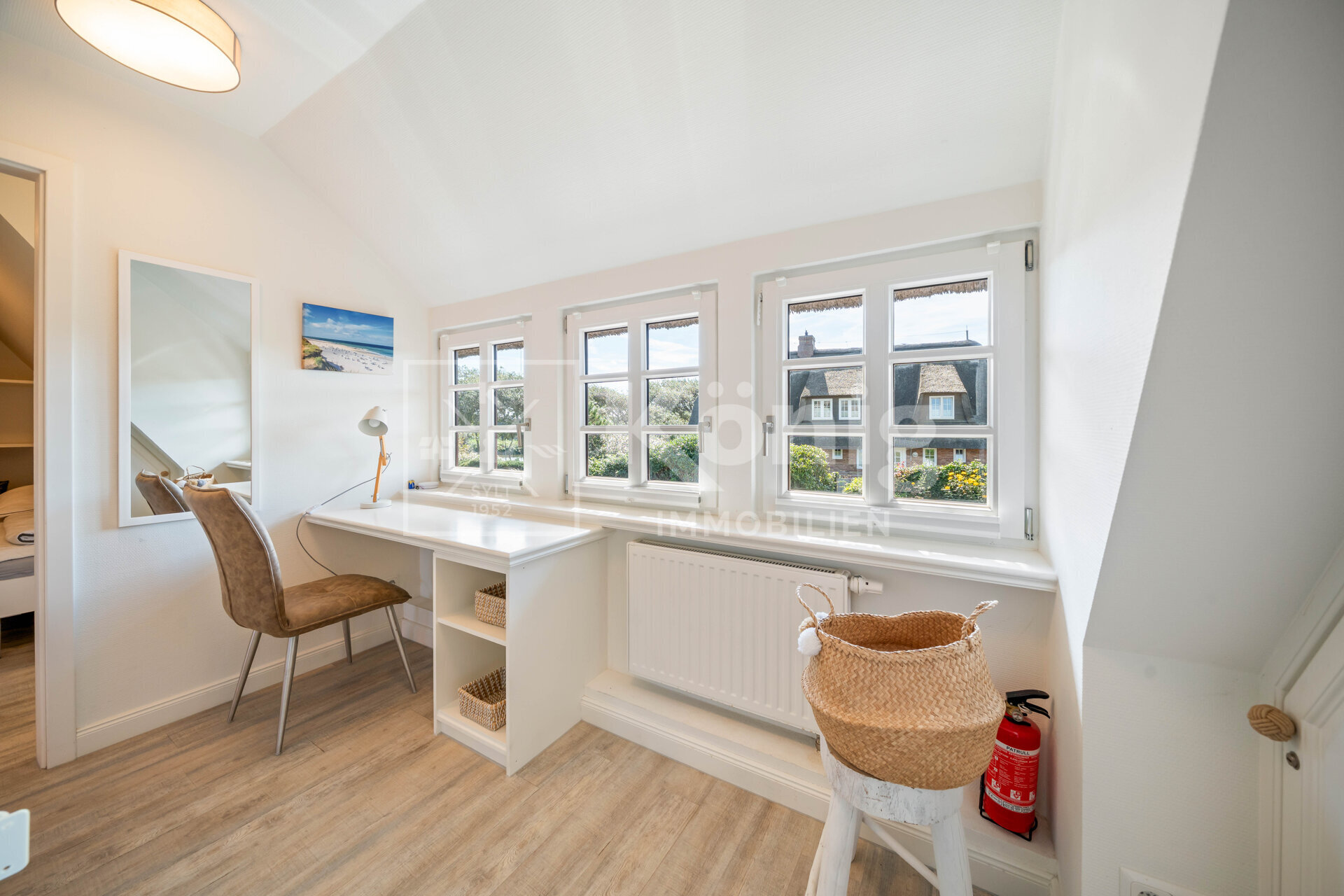 Entdecken Sie diese charmante Immobilie in bester Lage am Wenningstedter Dorfteich. Das Haus überzeugt durch einen gepflegten Zustand und bietet eine durchdachte Raumaufteilung auf zwei Etagen. Im Erdgeschoss empfängt Sie ein einladender Flur mit Garderobe, der in einen offen gestalteten Wohn-, Ess- und Küchenbereich, mit zusätzlichem Vorratsraum übergeht. Von hier aus haben Sie Zugang zur Südterrasse, die auf zwei Ebenen Platz für entspannte Stunden im Freien bietet. Des weiteren steht Ihnen ein Gartenhaus zur Verfügung, das Ihnen weiteren Stauraum bietet. Im Dachgeschoss finden Sie ein weiteres Badezimmer sowie zwei gemütliche Schlafzimmer vor. Für Entspannung sorgt eine hauseigene Infrarot Kabine, die Sie nach einem langen Tag zur Ruhe kommen lässt. Ihr Fahrzeug findet bequem Platz auf einem zugehörigen PKW-Außenstellplatz, der das Angebot dieser attraktiven Immobilie abrundet.