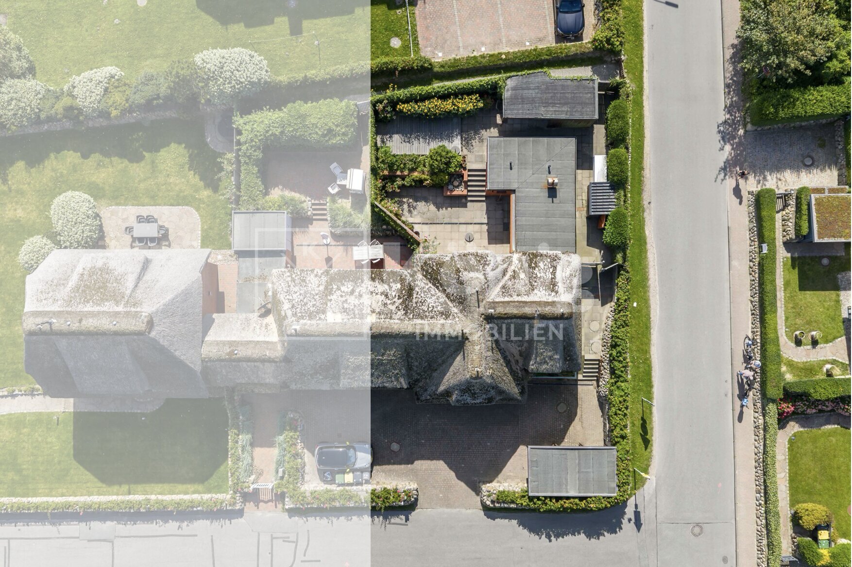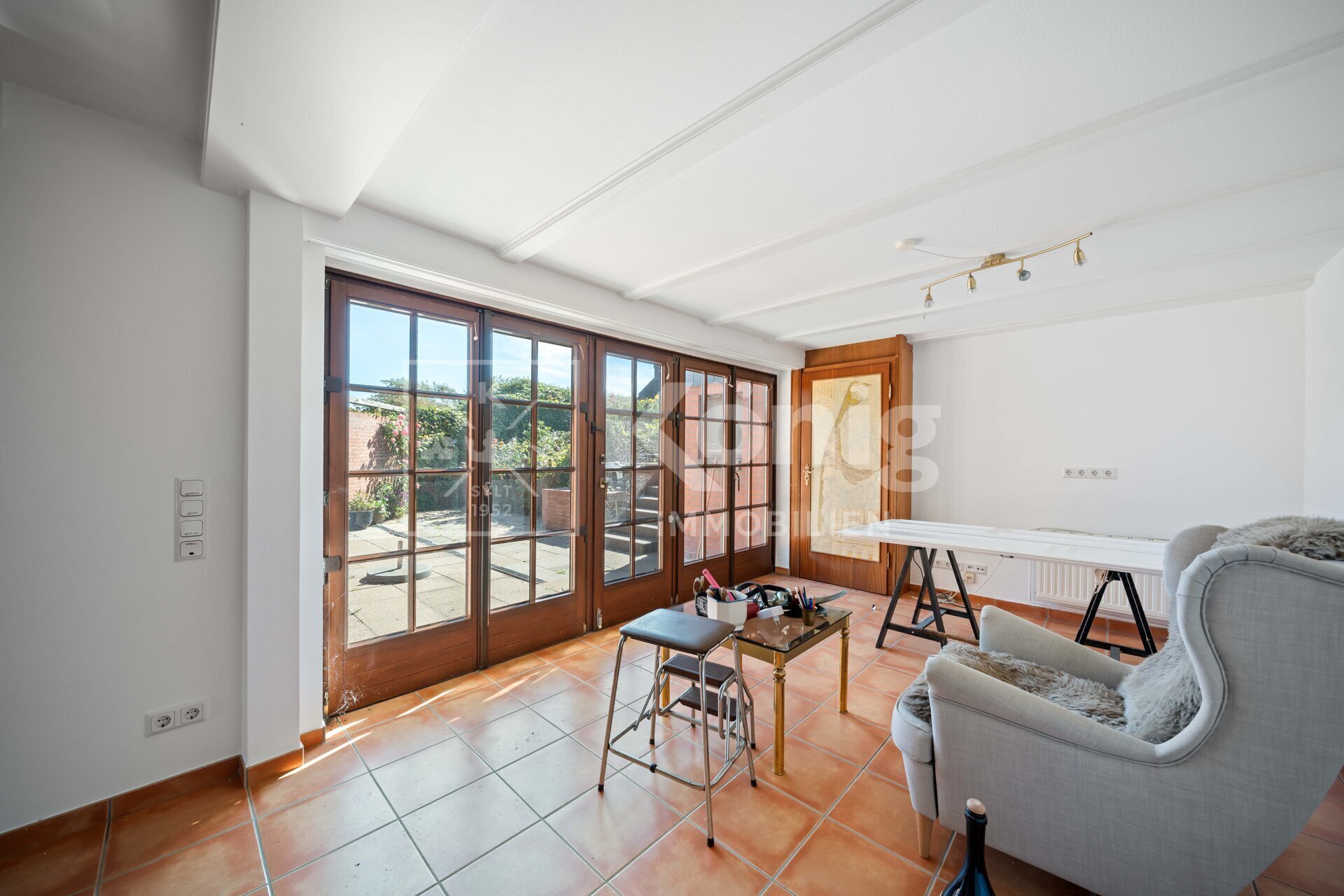Mit einer Gesamtfläche von 104 m² bietet die Immobilie genügend Platz zur individuellen Gestaltung. Im Erdgeschoss erwartet Sie ein Tageslichtbad und eine Einbauküche, die zusätzlich über einen kleinen Vorratsraum verfügt. Zwei hell und lichtdurchflutete Wohnbereiche sorgen für vielseitige Nutzungsmöglichkeiten, wobei einer der Bereiche direkten Zugang zur einladenden Terrasse bietet – ideal für entspannte Stunden im Freien. Das Gartenhaus bietet zusätzlichen Platz für Fahrräder oder die Terrassenmöbel. Das Dachgeschoss beherbergt ein weiteres Badezimmer und zwei gemütliche Schlafzimmer. Eines der Schlafzimmer punktet mit einem zusätzlichen Ankleidebereich, der weiteren Stauraum für Ihre Garderobe bietet. Ein PKW-Außenstellplatz mit schützendem Carport rundet dieses attraktive Angebot ab. Nutzen Sie die Gelegenheit, in Toplage am Wenningstedter Dorfteich Ihr persönliches Traumhaus zu gestalten.
