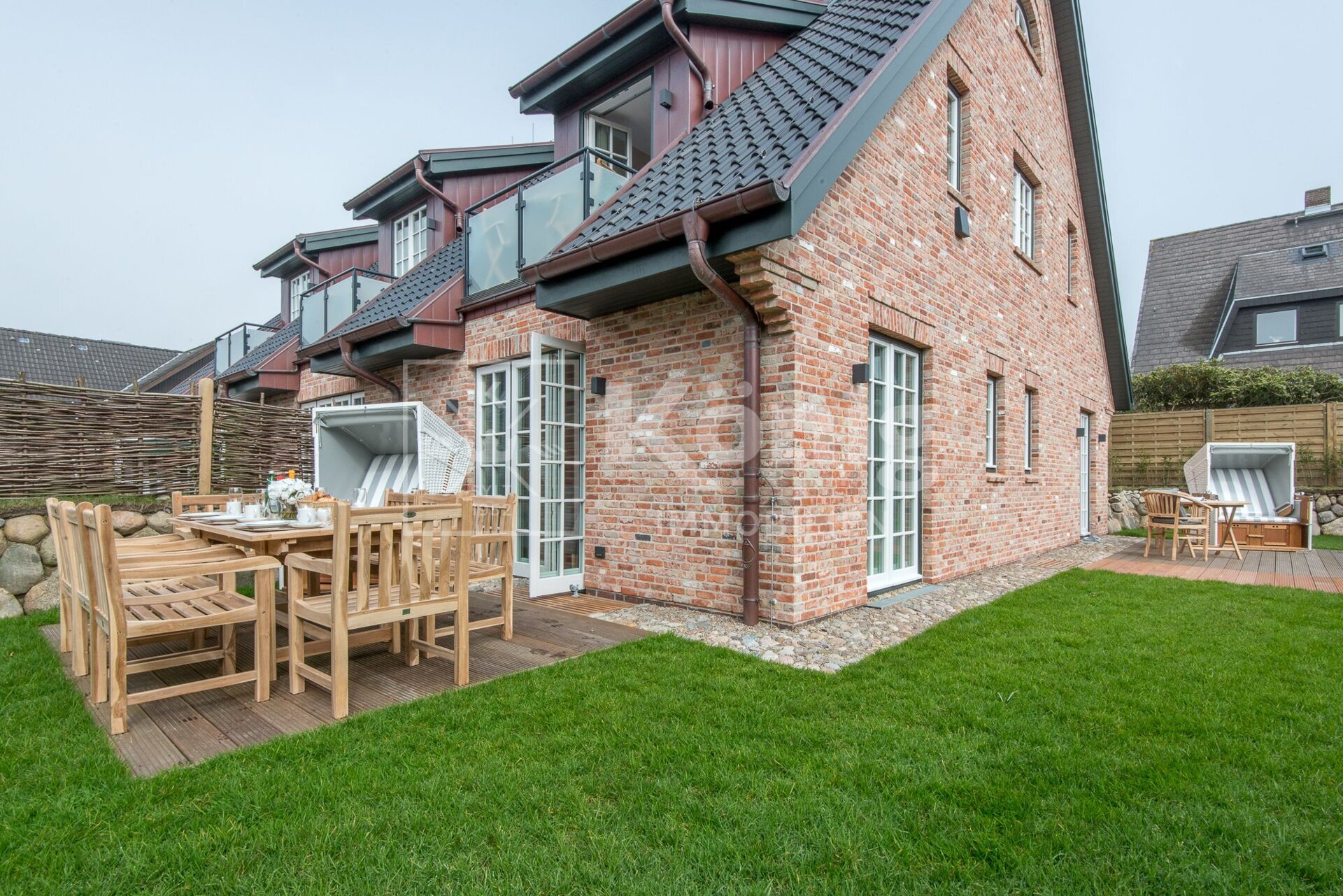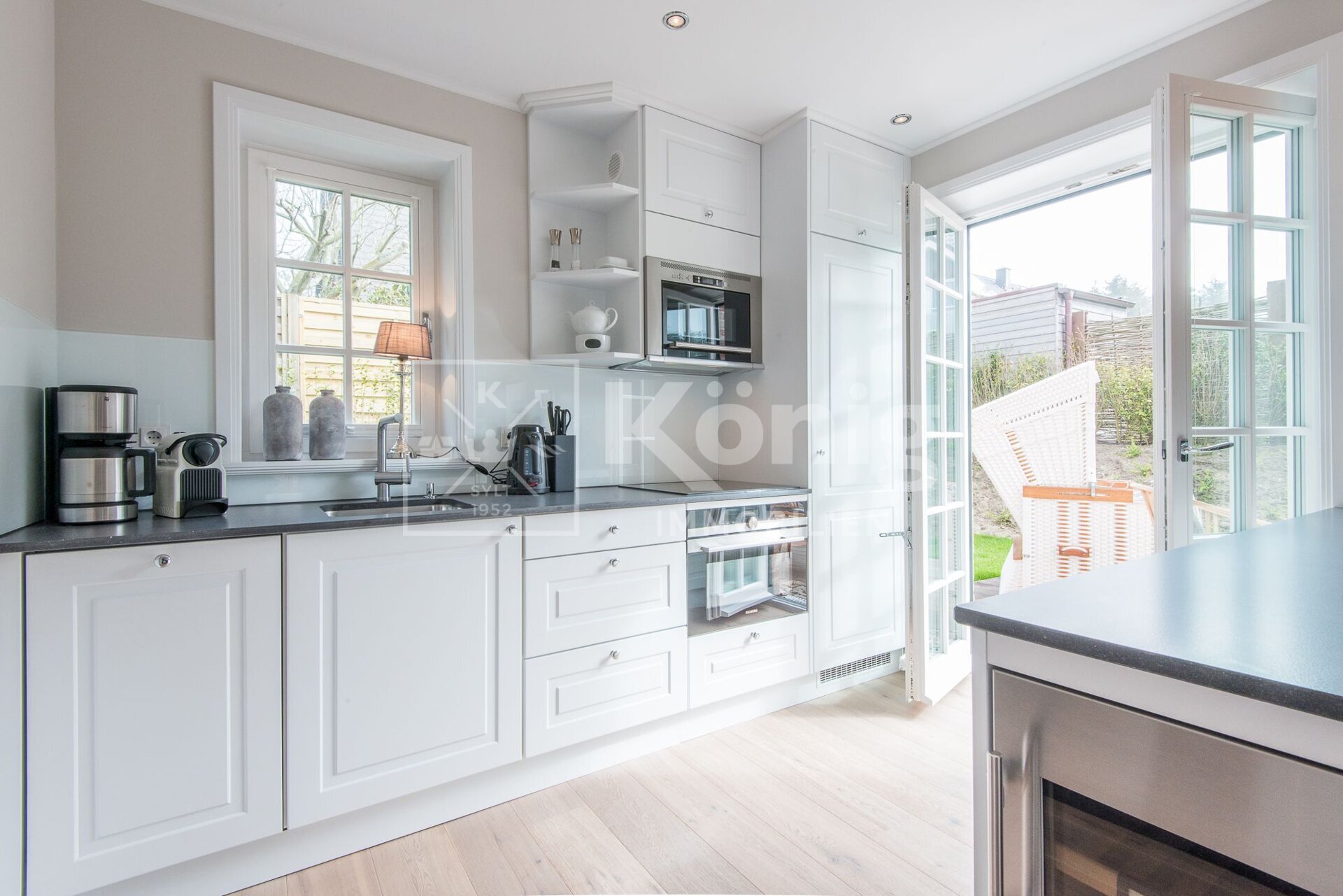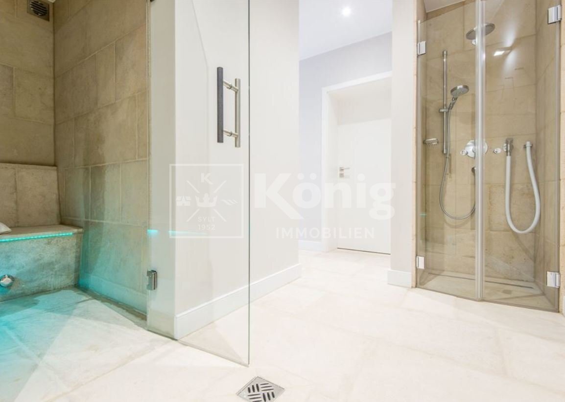 Dieser exklusive Endhausteil (offiziell genehmigt als Ferienwohnung) bietet auf ca. 145 m² Gesamtfläche vier gut geschnittene Ebenen (EG, UG, DG, SPB). Der Wohn- und Essbereich mit Gaskamin oder die sonnige Süd-Terrasse laden sowohl im Winter als auch im Sommer zum Verweilen ein. Im Erdgeschoss befinden sich die hochwertige Tischlereinbauküche, der Wohn- und Essbereich, sowie das Gäste-WC. Das Untergeschoss verfügt über zwei weitere großzügige Räume und ein Badezimmer. Weiterhin befindet sich im Kellergeschoss der separate, gemeinschaftliche Hausanschluss-/Heizungsraum und der Wellnessbereich mit finnischer Sauna und Dampfbad. Im Dachgeschoss befindet sich ein zeitlos modernes Duschbad und ein Schlafzimmer. Der Spitzboden besticht durch seine Tischlereinbauten und das friesische Flair.