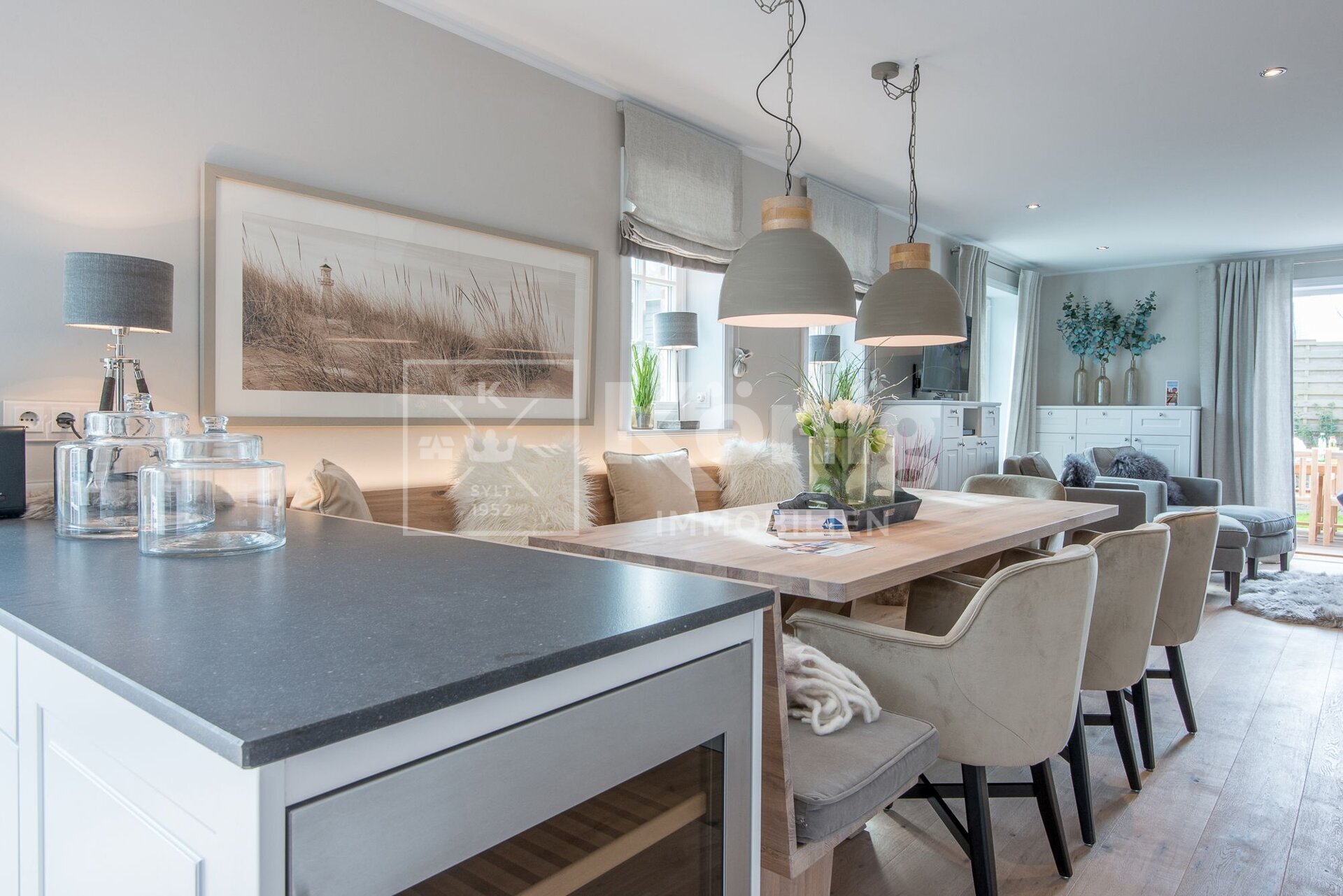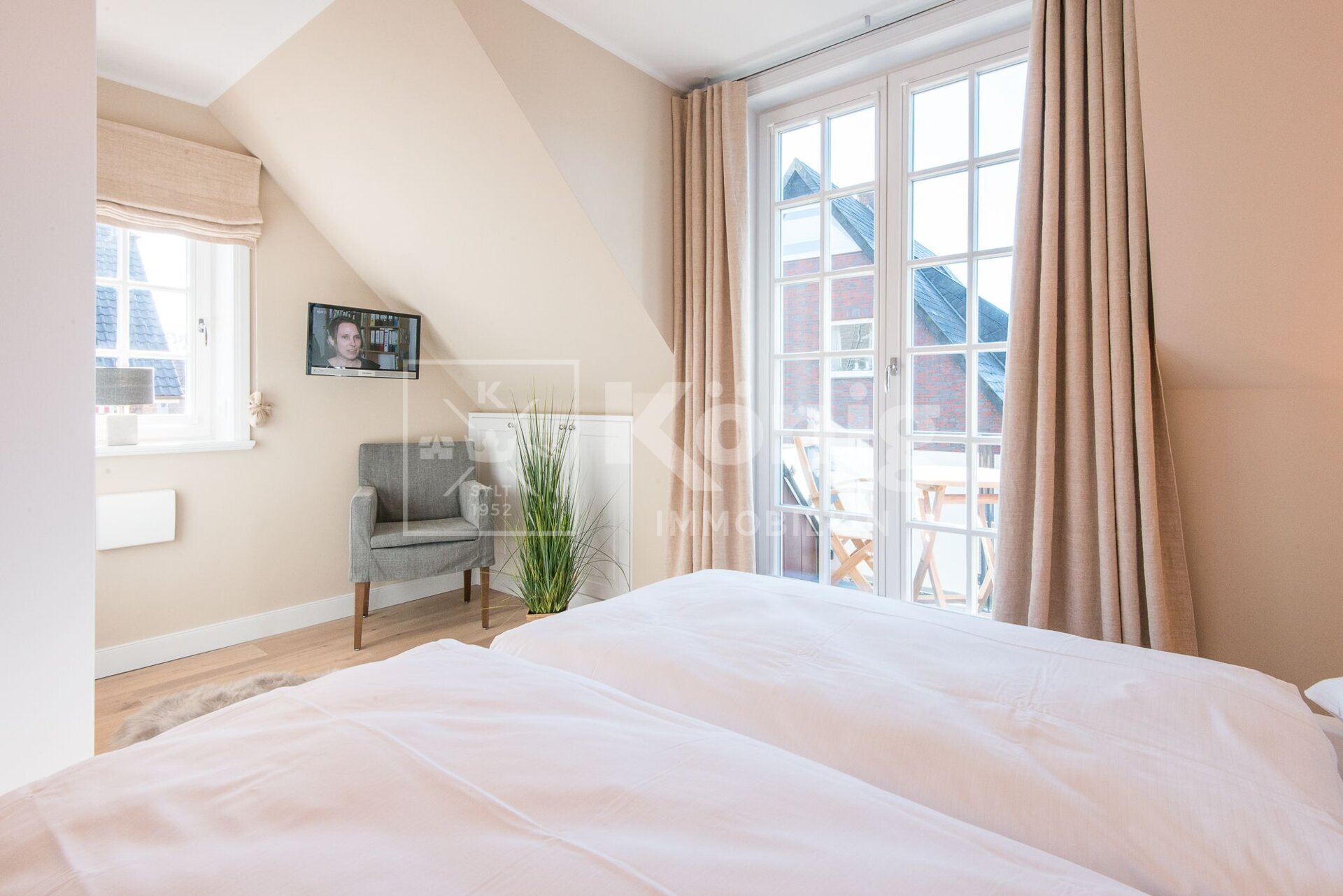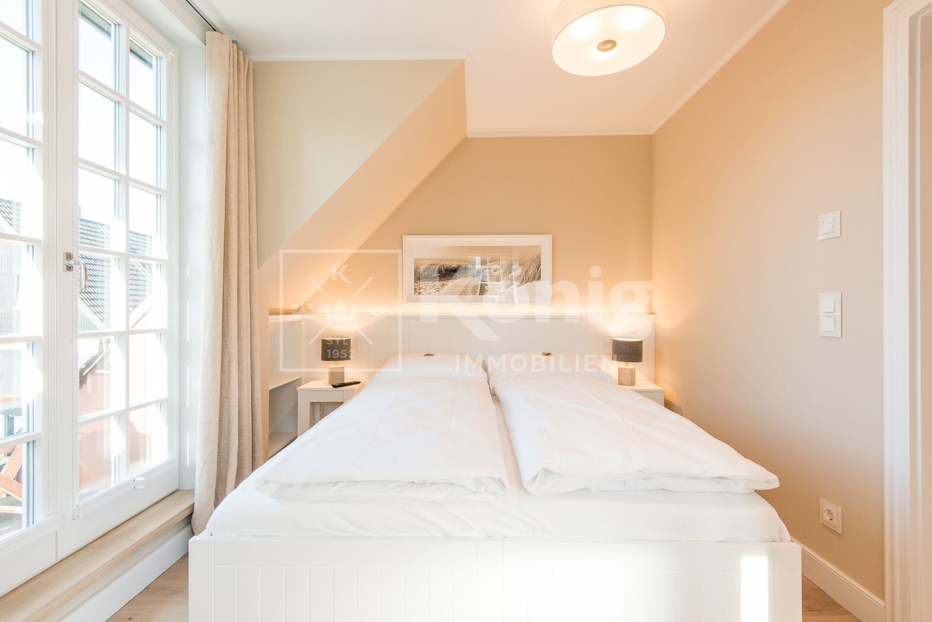 Dieser exklusive Endhausteil (offiziell genehmigt als Ferienwohnung) bietet auf ca. 145 m² Gesamtfläche vier gut geschnittene Ebenen (EG, UG, DG, SPB). Der Wohn- und Essbereich mit Gaskamin oder die sonnige Süd-Terrasse laden sowohl im Winter als auch im Sommer zum Verweilen ein. Im Erdgeschoss befinden sich die hochwertige Tischlereinbauküche, der Wohn- und Essbereich, sowie das Gäste-WC. Das Untergeschoss verfügt über zwei weitere großzügige Räume und ein Badezimmer. Weiterhin befindet sich im Kellergeschoss der separate, gemeinschaftliche Hausanschluss-/Heizungsraum und der Wellnessbereich mit finnischer Sauna und Dampfbad. Im Dachgeschoss befindet sich ein zeitlos modernes Duschbad und ein Schlafzimmer. Der Spitzboden besticht durch seine Tischlereinbauten und das friesische Flair.