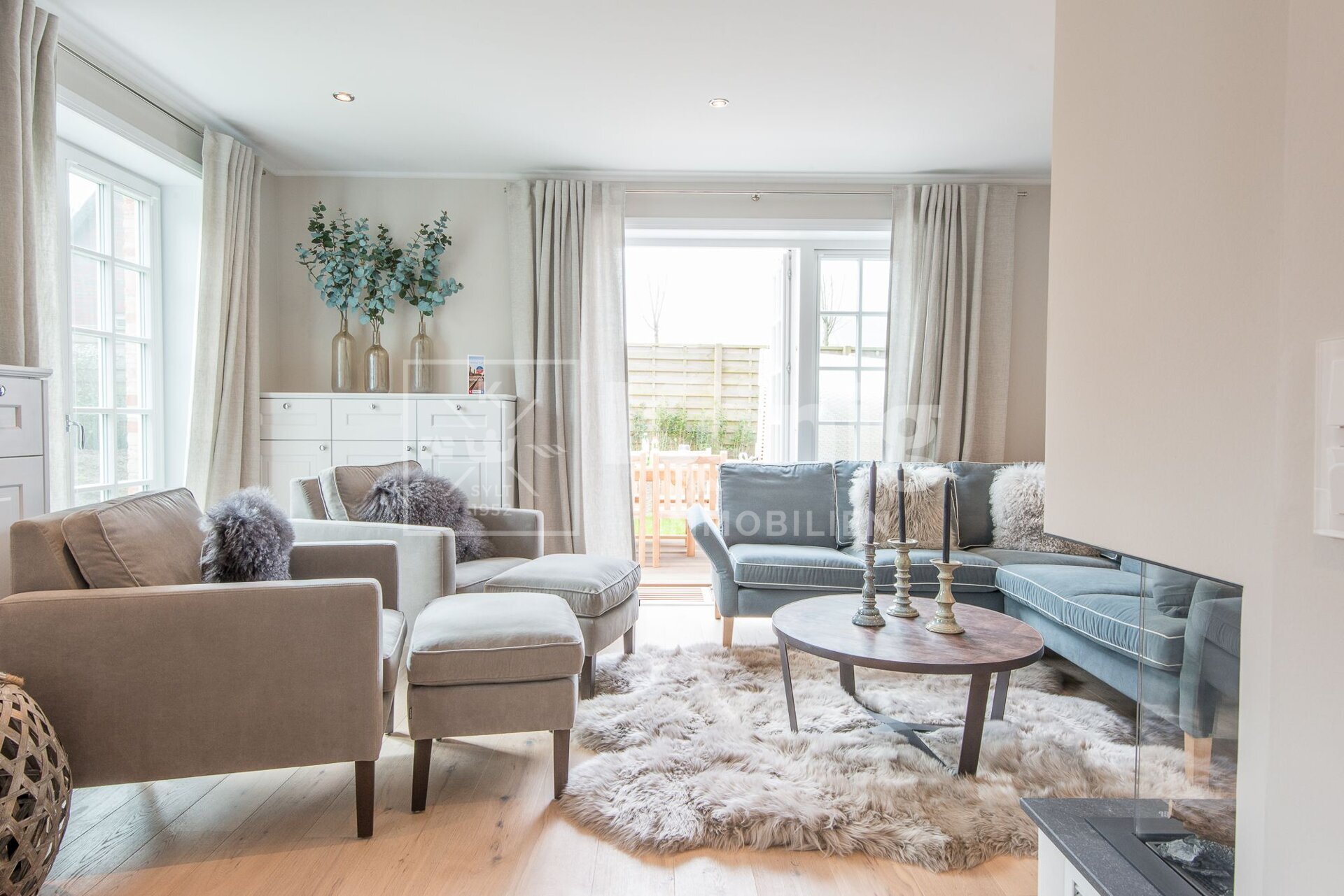 Die Gesamtfläche umfasst Wohn- und Nutzflächen und basiert auf dem „Sylter Maß“. Gemessen werden alle Flächen an den Fußleisten (Erd-, Dach- und Untergeschoss sowie Spitzboden), Terrassen und Freisitze werden zu 100 % angerechnet. Eine genormte Berechnung nach WoFlV oder II. BV liegt nicht vor.
