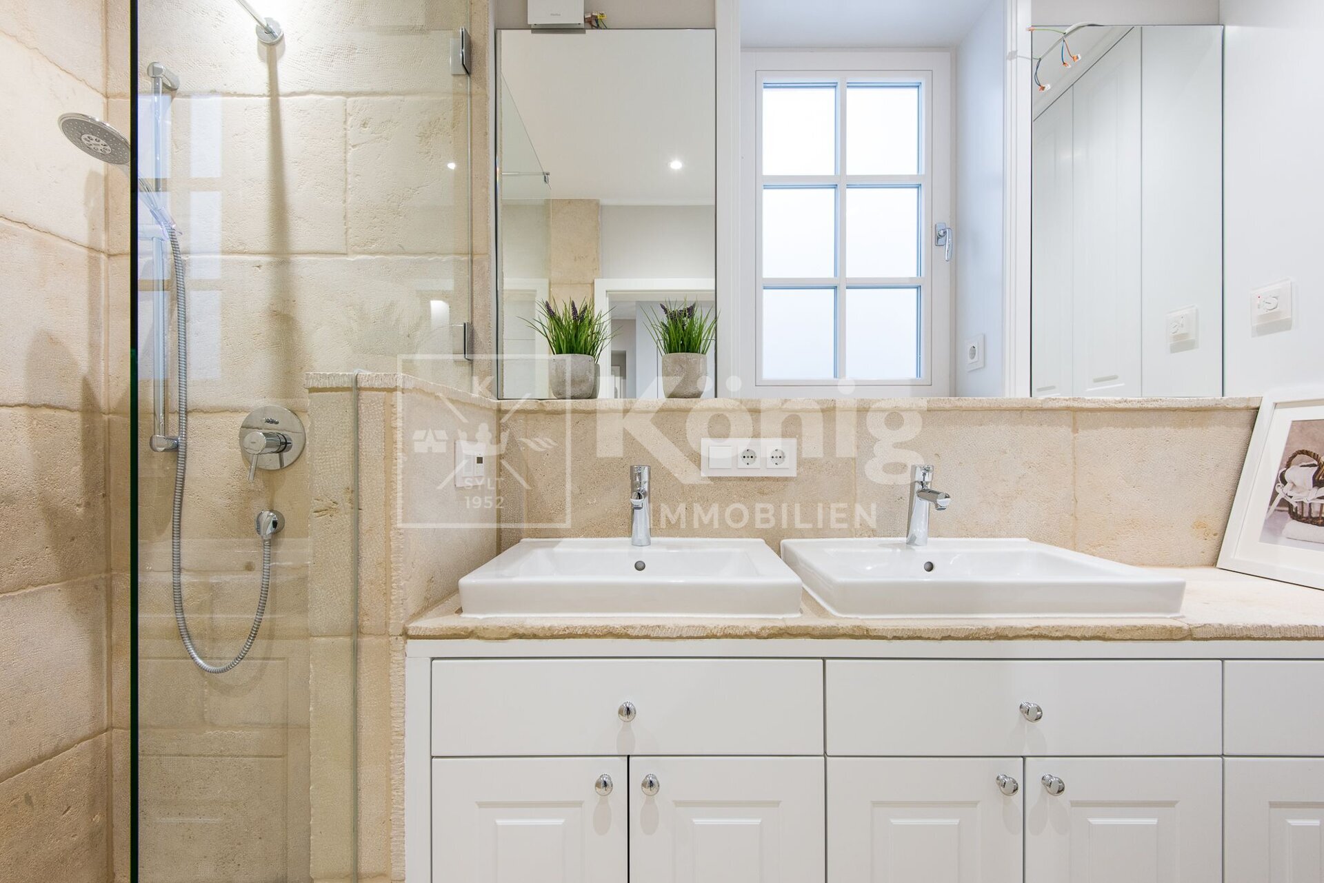 - edler Naturstein in den Badezimmern