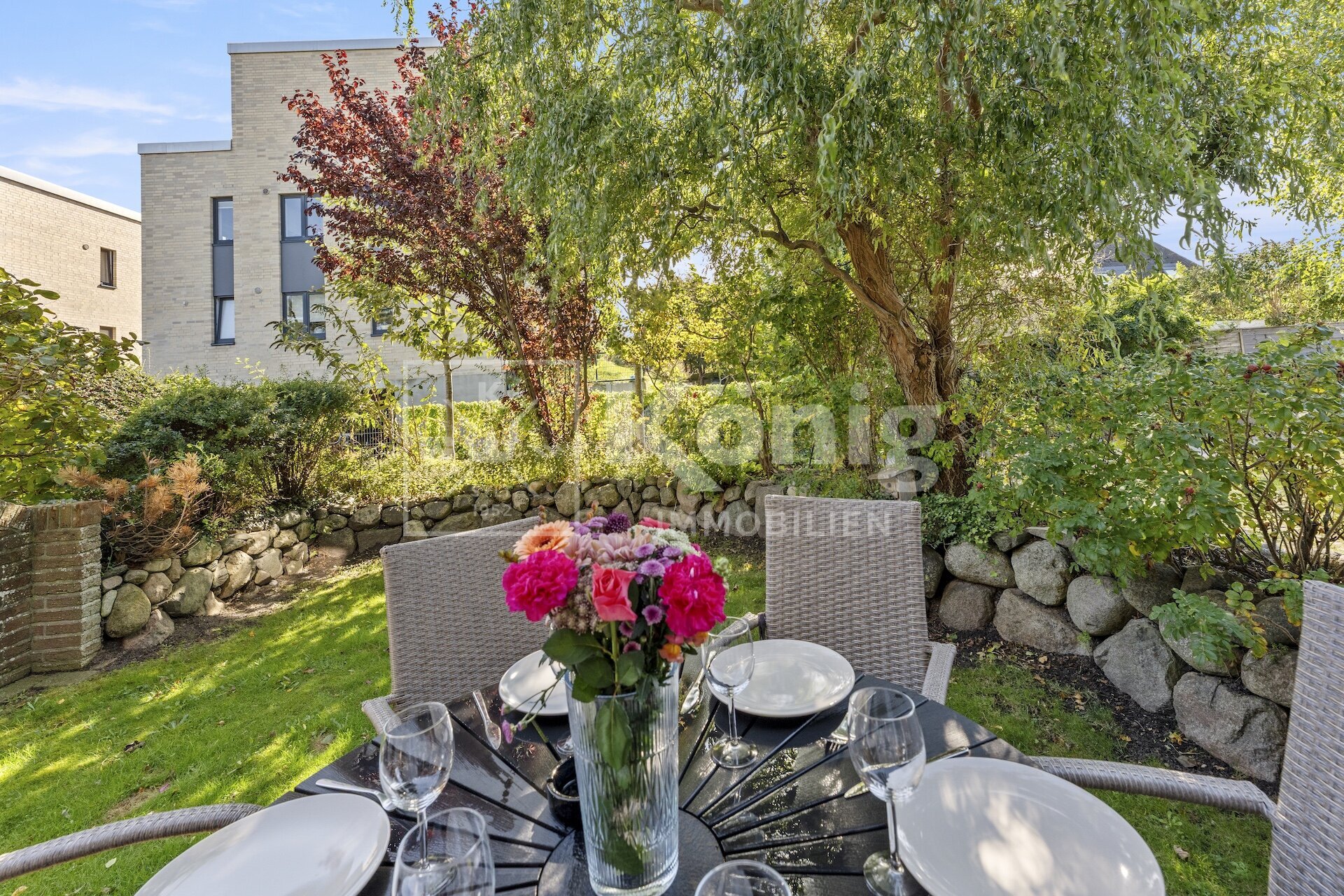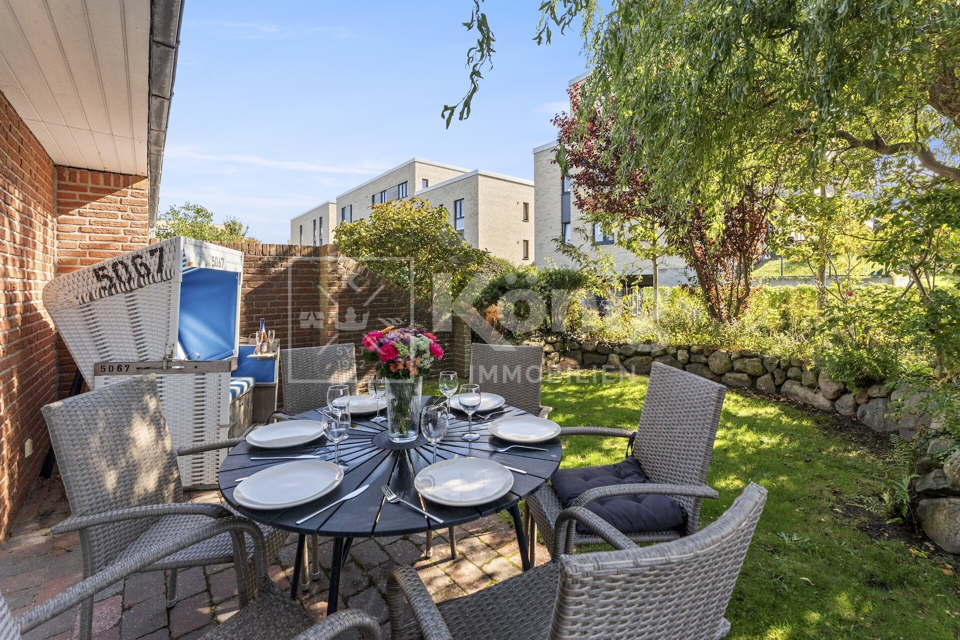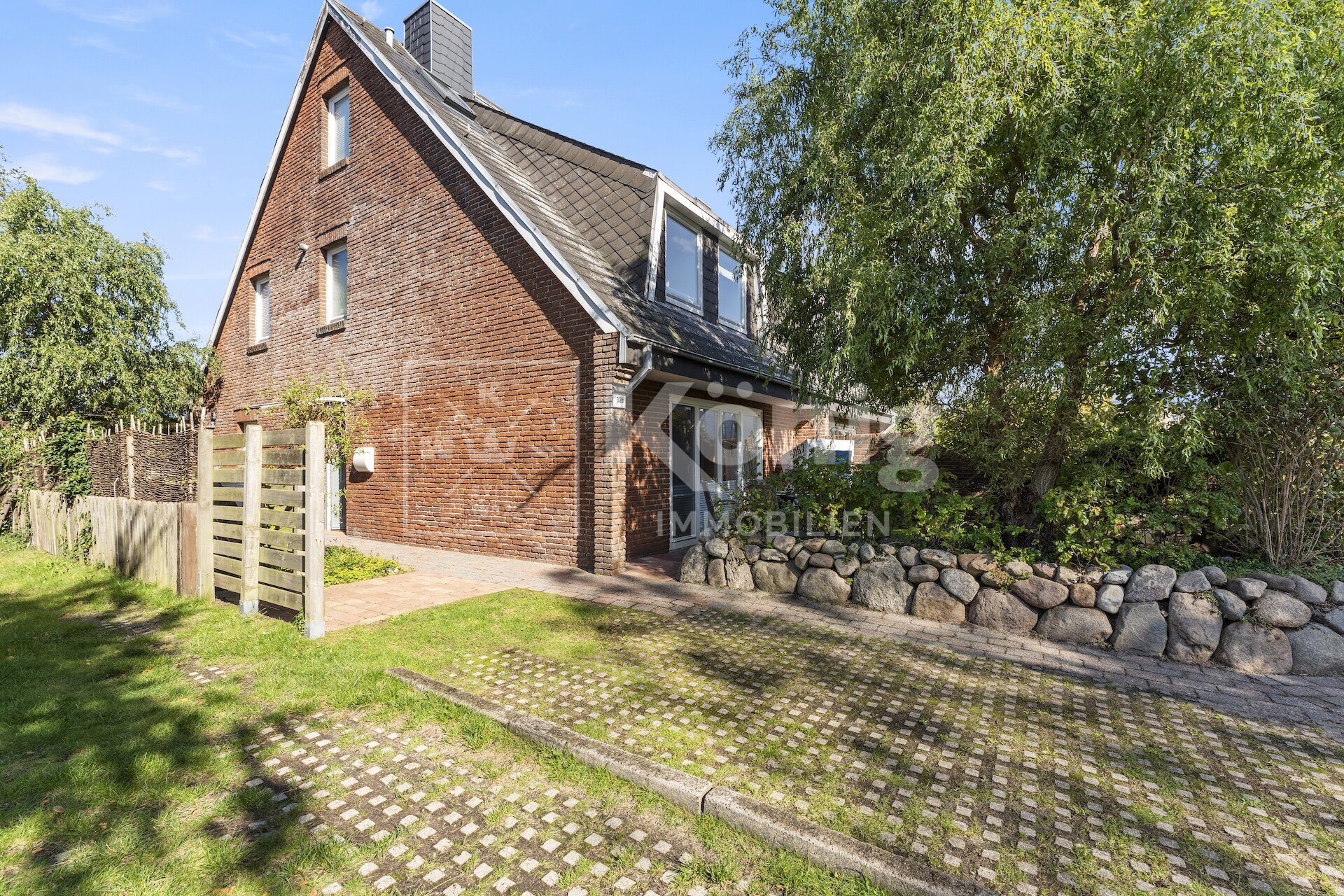 Die Haushälfte befindet sich in einem ruhigen und gefragten Wohngebiet in Alt-Westerland und ist zentral gelegen. Lebensmittelmärkte, Bäcker und Einkaufsmöglichkeiten sind schnell erreichbar. Die Westerländer Innenstadt ist fußläufig in 5-10 Minuten erreichbar. Besonders bei Sylter-Familien ist diese Lage sehr beliebt.