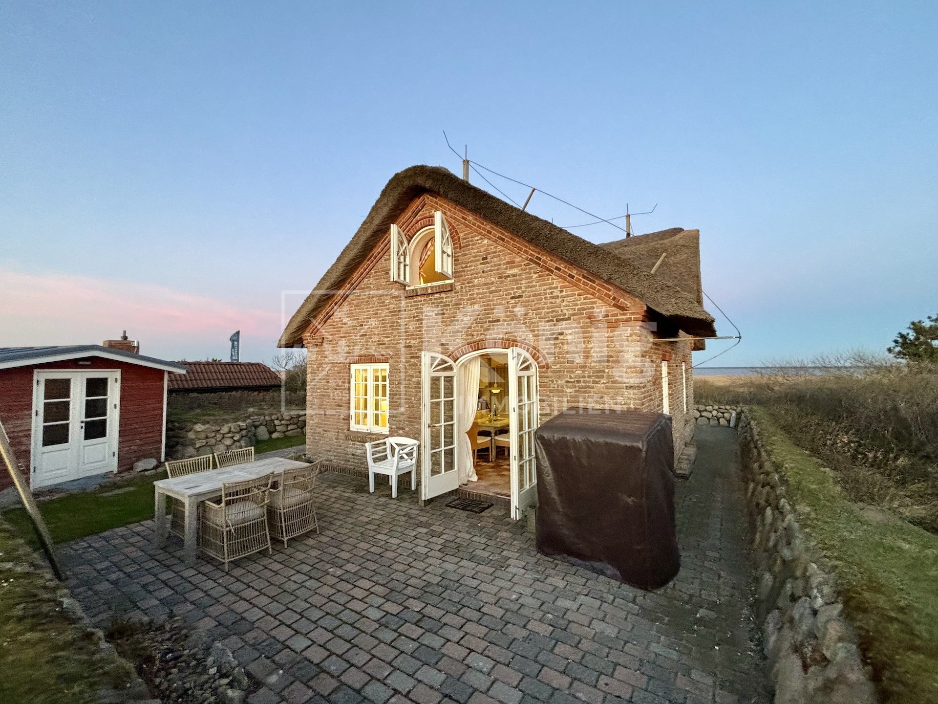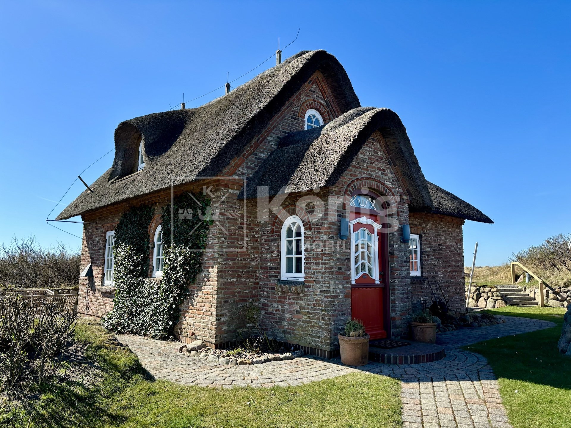 Willkommen in einem charmanten Reetdachhaus, das den klassischen Sylter Stil verkörpert. Dieses beeindruckende Hideaway unter Reet wurde 1994 umfassend saniert und umgebaut. Die Echtholzfenster sind aus Mahagoniholz, die in zeitlosem Weiß gestrichen wurden. Typische Sylter Friesenwälle umrahmen das Grundstück und schaffen eine einladende Atmosphäre.