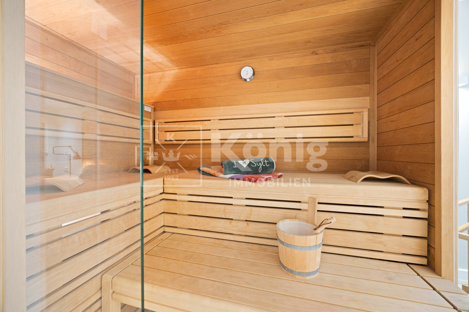 - verglaste finnische Design-Sauna des Markenherstellers Teka, ausgekleidet mit gebürsteter Thermoerle