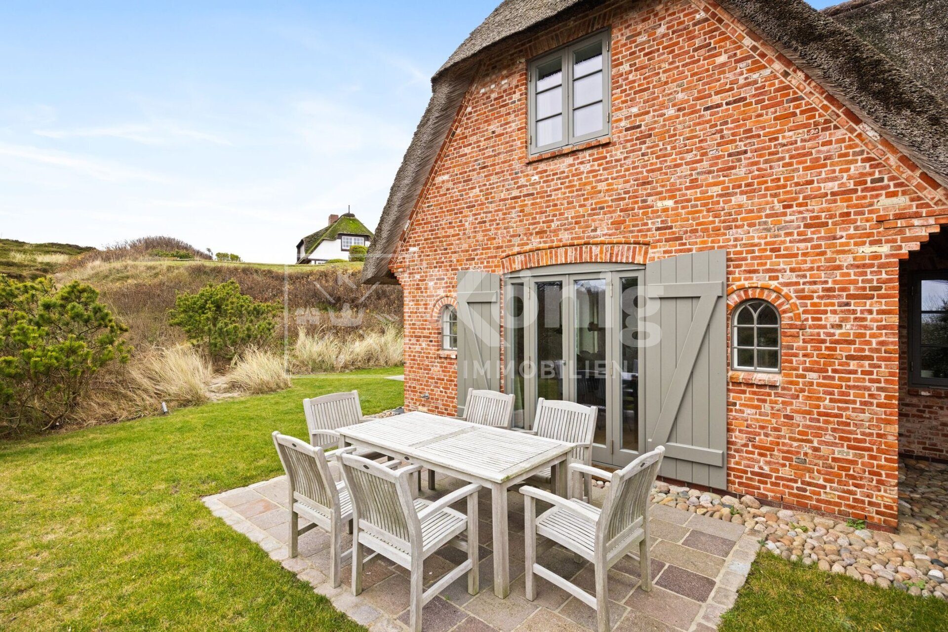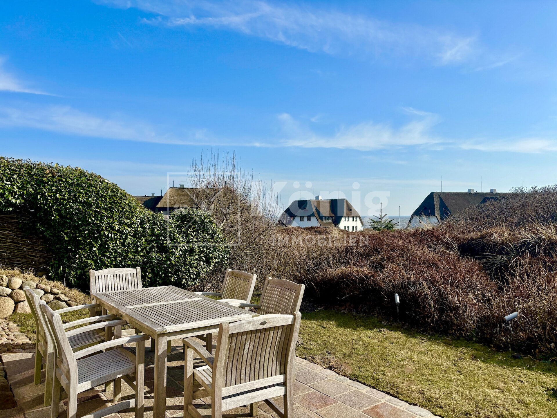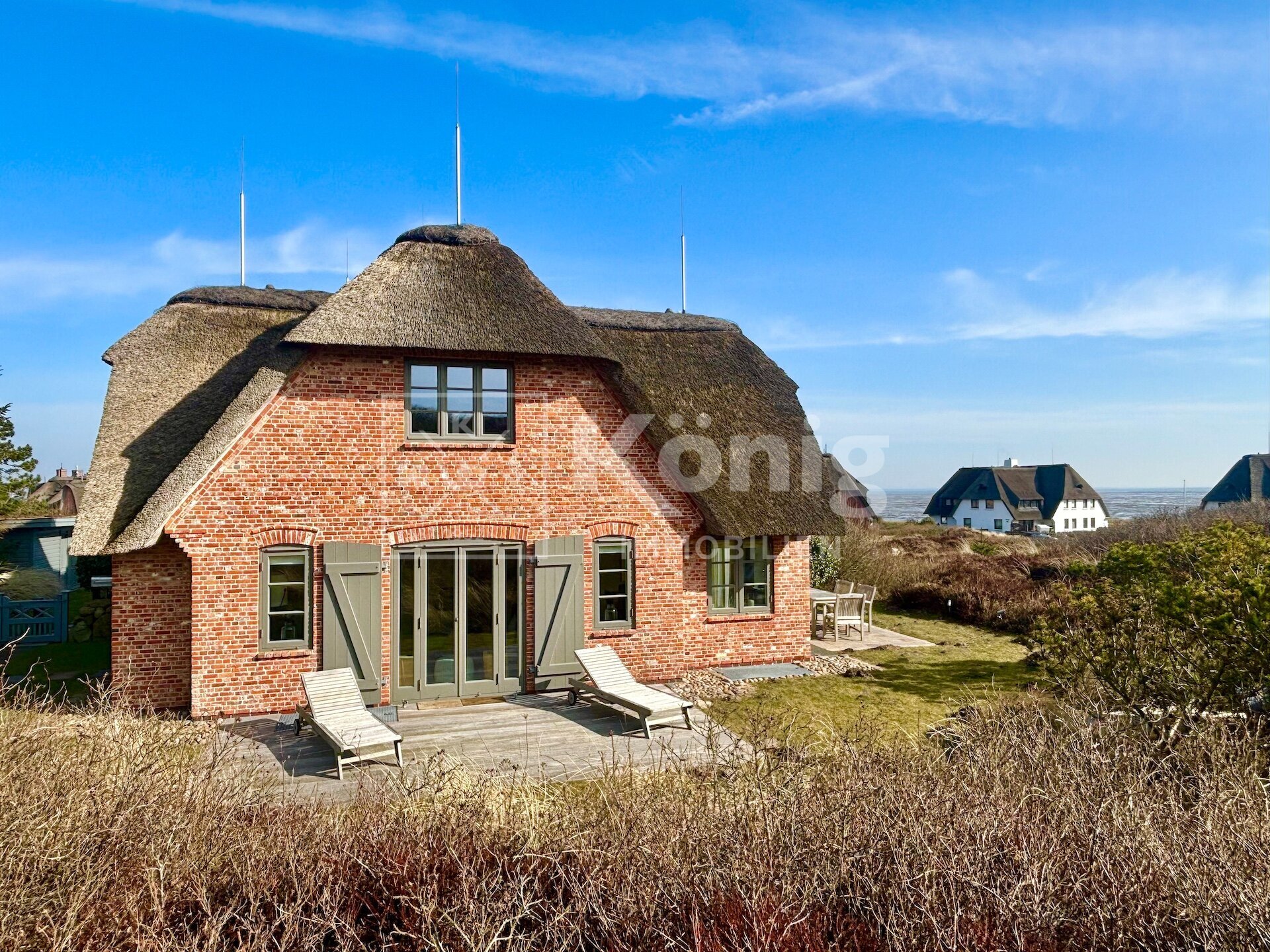 Diese attraktive Haushälfte unter Reet befindet sich in bevorzugter Strandlage und bietet einen unvergleichlichen Ausblick auf das faszinierende Wattenmeer. Eingebettet in die malerischen Dünen genießen Sie hier Ruhe und Naturverbundenheit zugleich. Die südwestliche Ausrichtung sorgt für viel Sonnenlicht und eine angenehme Atmosphäre.