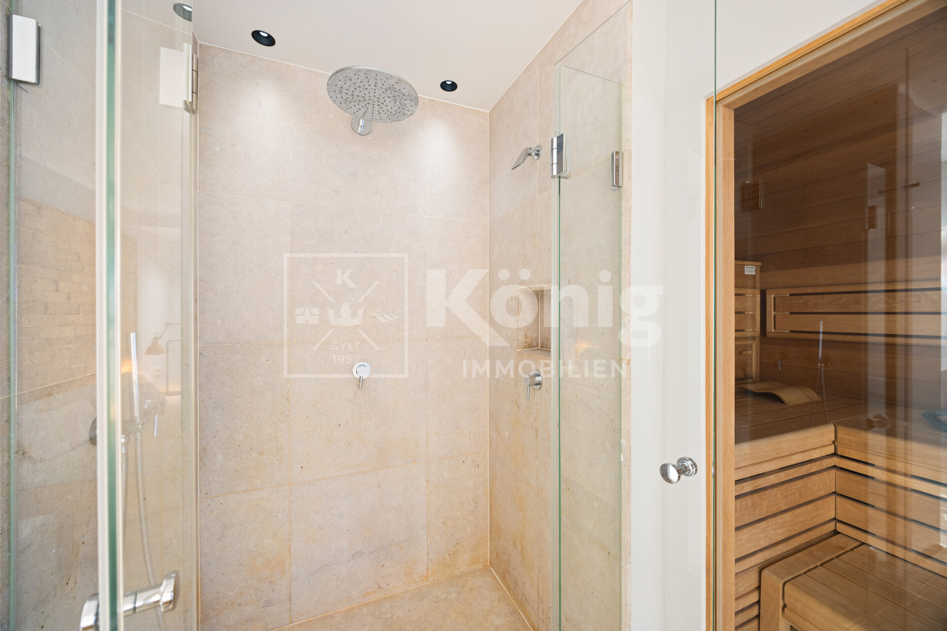 Im Untergeschoss befindet sich ein wunderschön ausgestatteter Saunabereich mit einer Ruhe Oase und Dusche, angrenzendem separaten WC. Die verglaste finnische Design-Sauna des Markenherstellers Teka, ausgekleidet mit gebürsteter Thermoerle lädt zum Entspannen ein. Sehr praktisch ist der Hauswirtschaftsraum. Der Technikbereich ist separat gehalten und mit modernster Technik ausgestattet. Ein weiterer Raum rundet das Platzangebot ab. Ein PKW-Stellplatz ist direkt am Haus vorhanden.