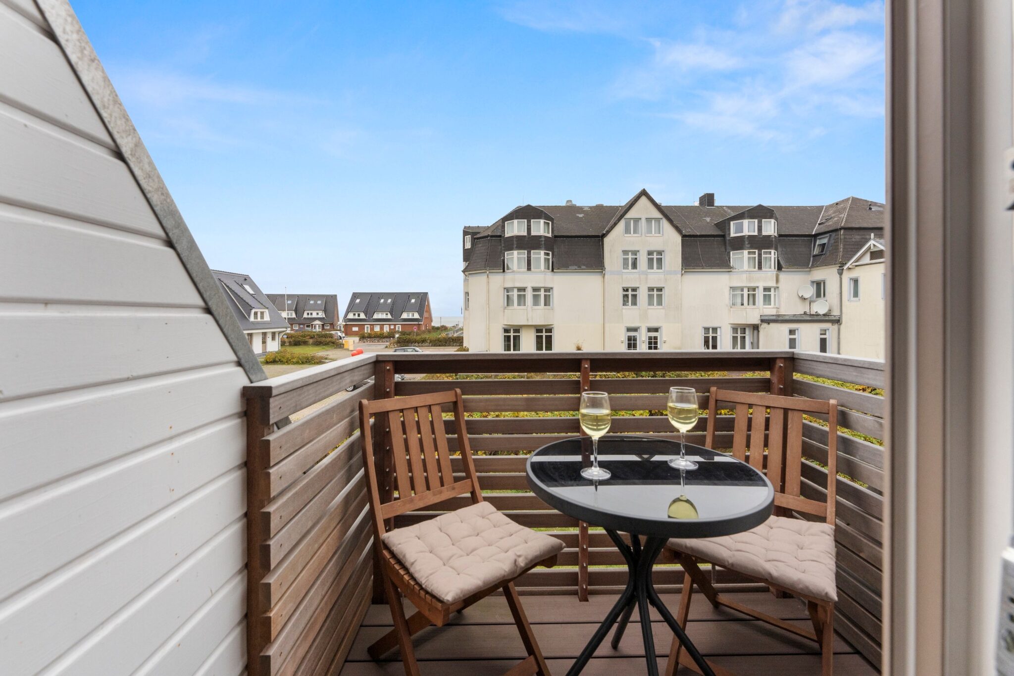 Der möblierte Balkon in Westausrichtung ist ein echtes Highlight. Beobachten Sie das Meer in der Ferne, lassen Sie sich von der salzigen Brise umhüllen und erleben Sie unvergessliche Sonnenuntergänge bei einem Glas Wein – ganz bequem vom eigenen Logenplatz aus.