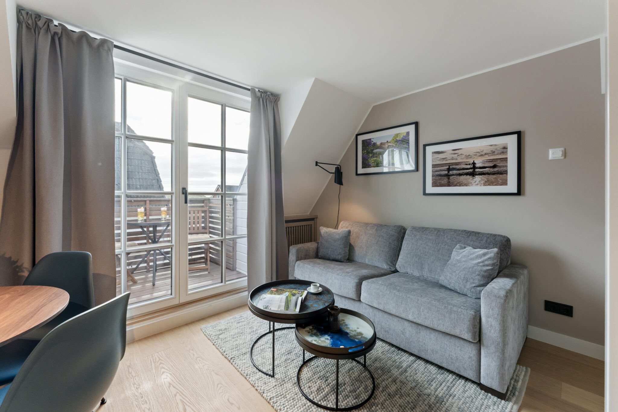 Diese charmante Ferienwohnung auf zwei Ebenen ist der ideale Rückzugsort für Paare oder Alleinreisende, die Sylt in vollen Zügen genießen möchten. Mit stilvollem, urbanem Design und durchdachter Ausstattung bietet sie auf ca. 55 qm alles, was das Urlaubsherz begehrt – inklusive Balkon mit seitlichem Meerblick und fußläufiger Nähe zum Strand.
