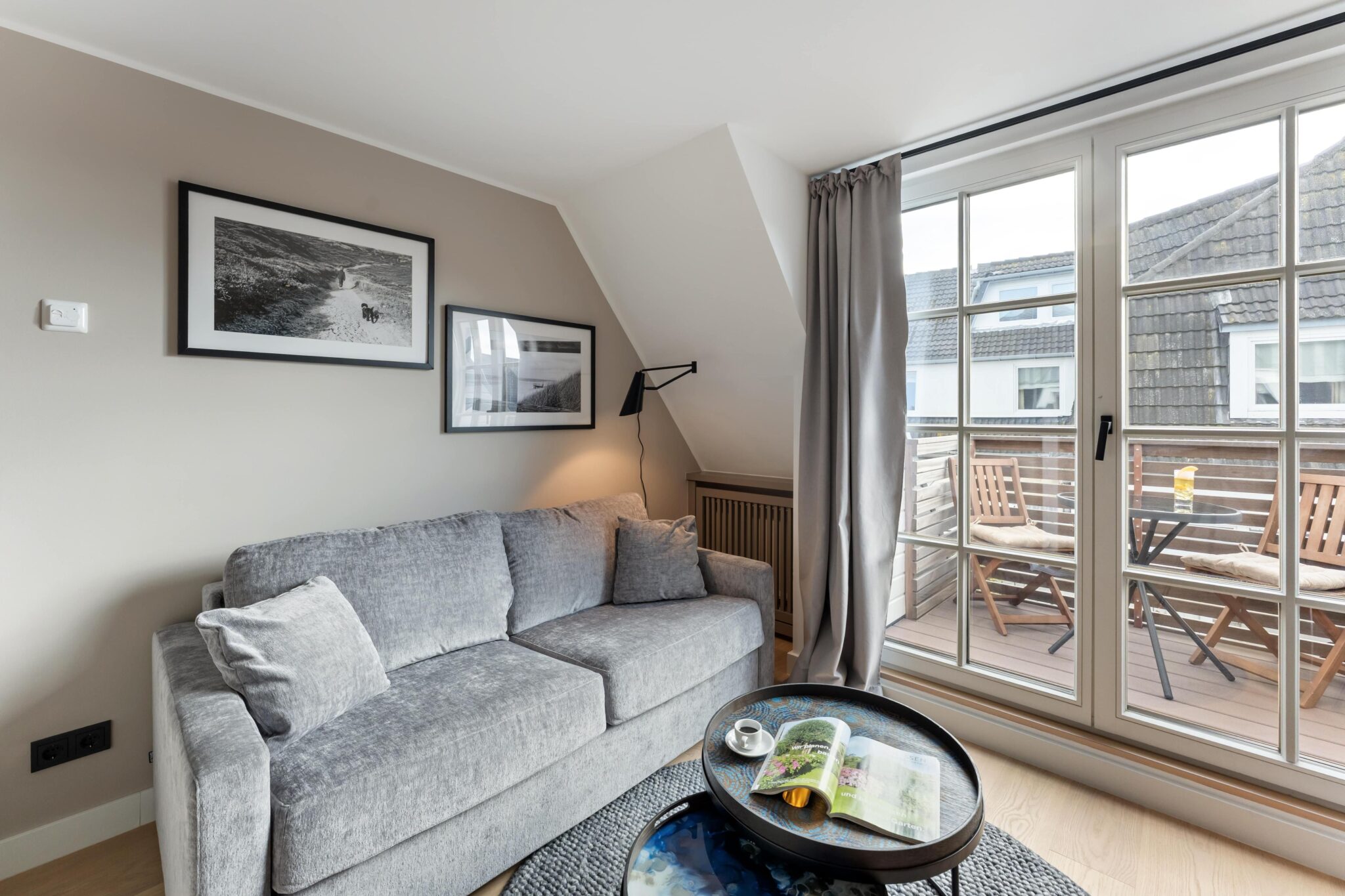 Diese charmante Ferienwohnung auf zwei Ebenen ist der ideale Rückzugsort für Paare oder Alleinreisende, die Sylt in vollen Zügen genießen möchten. Mit stilvollem, urbanem Design und durchdachter Ausstattung bietet sie auf ca. 55 qm alles, was das Urlaubsherz begehrt – inklusive Balkon mit seitlichem Meerblick und fußläufiger Nähe zum Strand.