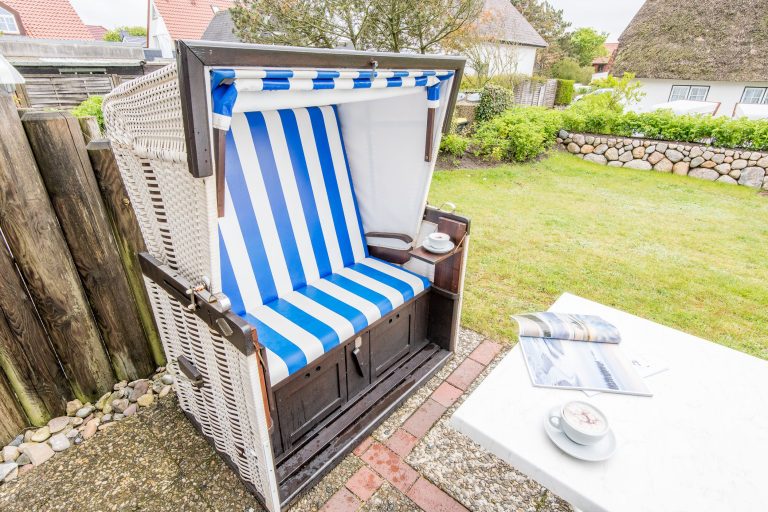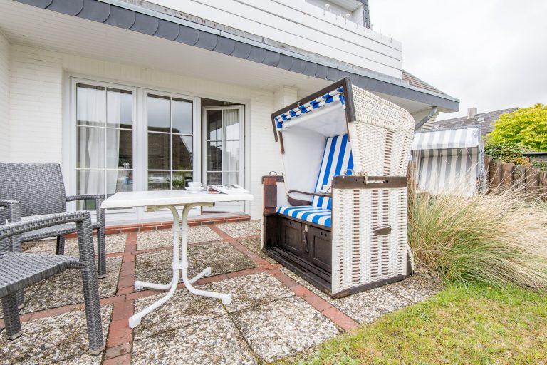 Diese helle Ferienwohnung bietet die perfekte Basis, um Sylt zu entdecken. Nach einem entspannten Tag am Strand oder einer Radtour durch die Dünen kehren Sie in Ihr Domizil zurück und genießen die sonnige Südterrasse. Lehnen Sie sich im Strandkorb zurück, während die Nachmittagssonne Sie verwöhnt, und lassen Sie den Tag bei einem Glas Wein oder einem guten Buch ausklingen. Die ruhige Atmosphäre der Terrasse ist ideal, um den Tag entspannt abzurunden.