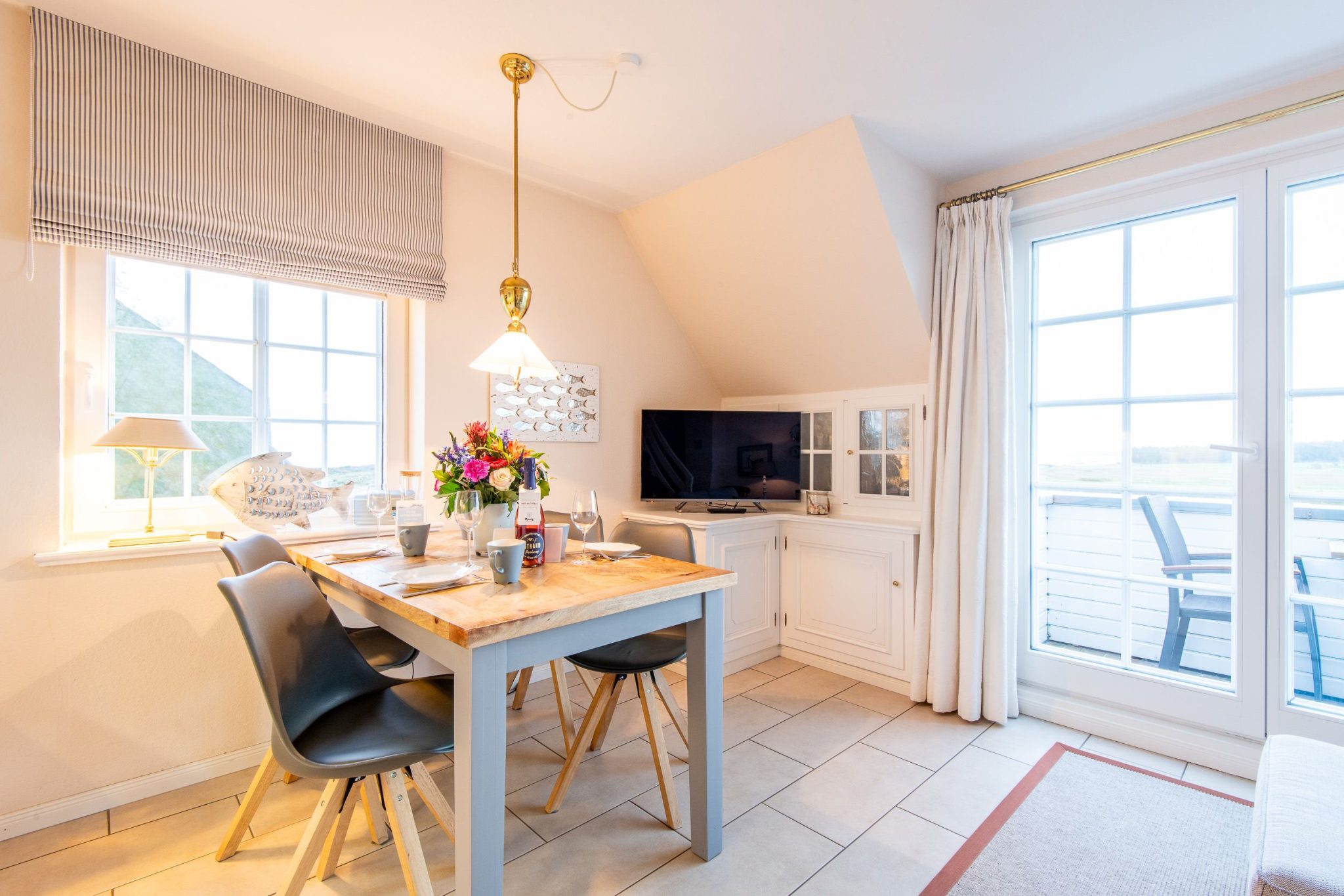 Ihr Rückzugsort mit Wattblick – Genießen Sie die Ruhe und den einzigartigen Blick über das Wattenmeer von Ihrem sonnigen Süd-Balkon aus – ideal für entspannte Momente an der frischen Nordseeluft. Das stilvoll eingerichtete Wohnzimmer mit großzügiger Sofaecke lädt zum Verweilen ein, während die voll ausgestattete Küche für kulinarische Entfaltung sorgt. Lassen Sie die idyllische Wattlandschaft auf sich wirken und erleben Sie pure Erholung in dieser charmanten Wohnung im 'Haus Sönshörn'.